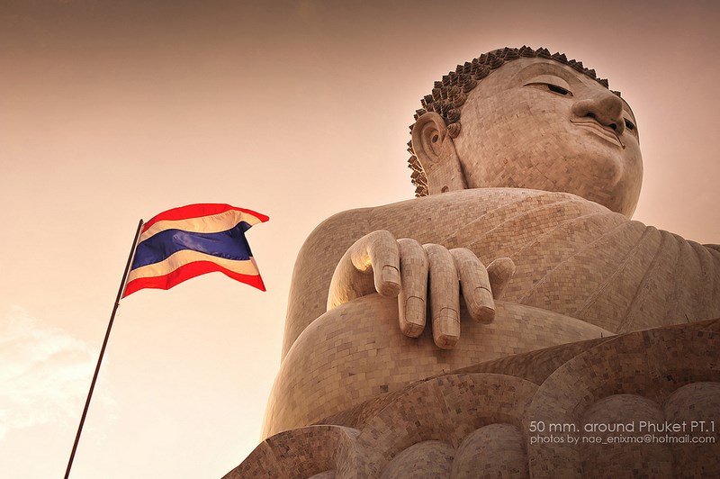 Khao Nakkerd It is the highest peak in the contiguous area. Between Karon Subdistrict and Chalong Subdistrict, Mueang District, Phuket Province There is a big Buddha image enshrined on top of Khao Nakkerd, namely Phra Phuttha Mingmongkol Aeknakkiri. It is a contemporary Buddha image. Pang Mara Wichai, lap width 25.45 meters, height 45 meters.